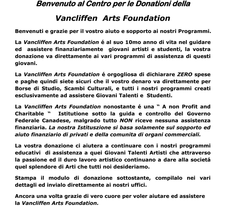 Make A Donation Scaricare Il Modulo PUOI ANCHE FARE LA DONATION ON LINE PREMERE QUI E RICEVERAI IMMEDIATAMENTE LA RICEVUTA PER LE TASSE